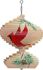 The cardinal spinner is made from hardwood maple and measures 8.5" wide and 11" tall, plus the sturdy spinning hardware. The color is weather and UV resistant. It comes shrink-wrapped flat with swivel and hanging instructions.